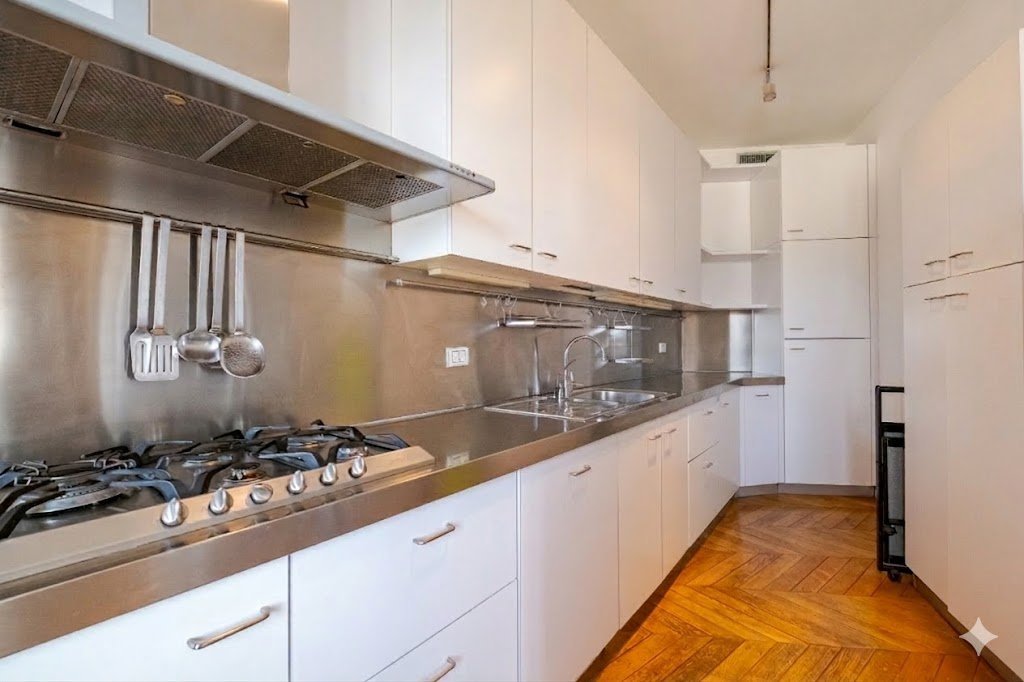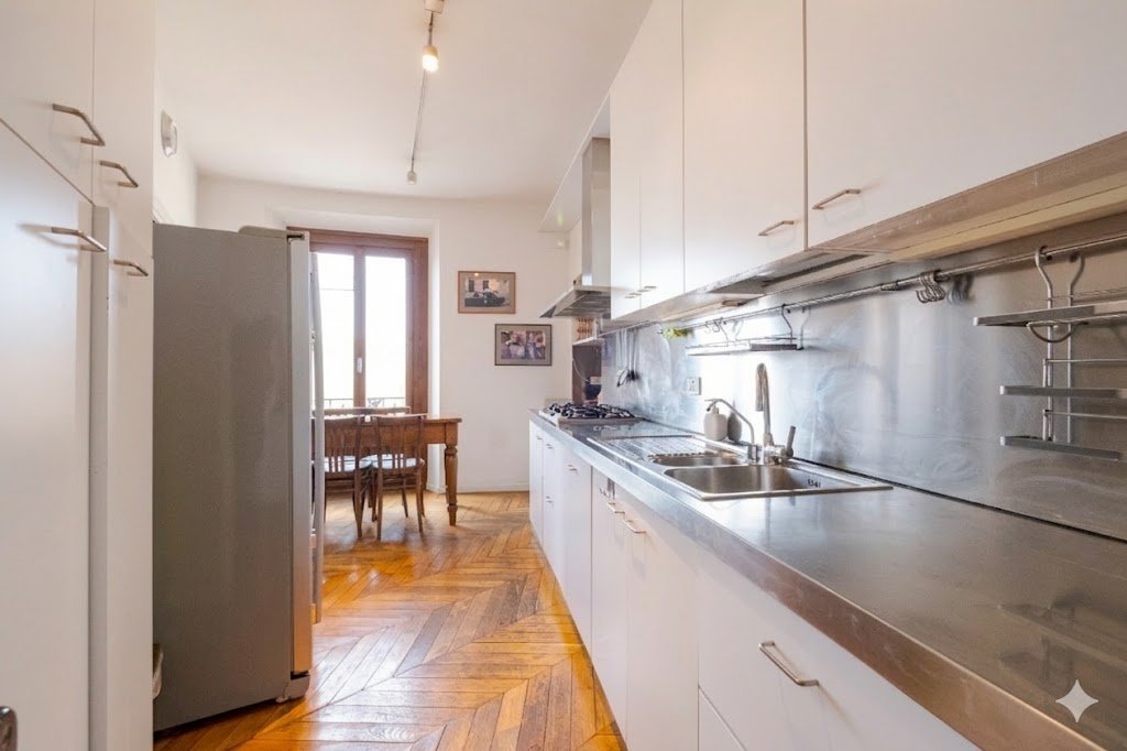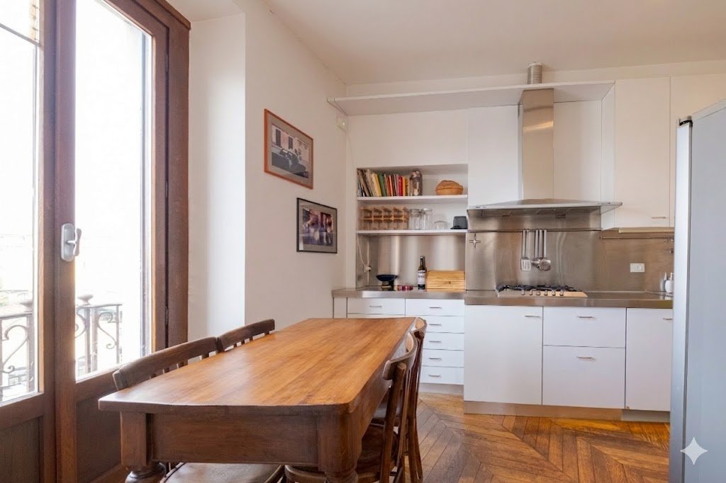 L’abitazione gode di una straordinaria luminosità grazie alla tripla esposizione. Tre deliziosi balconcini offrono affacci diretti su soggiorno, cucina e suite padronale, mentre le altre stanze regalano scorci romantici in perfetto stile parigino.
