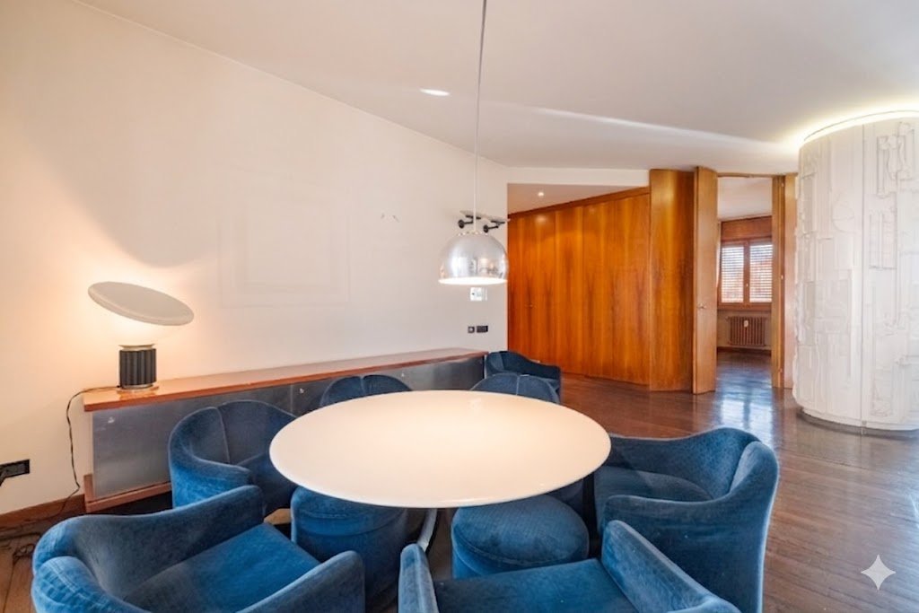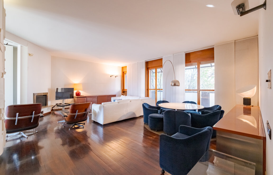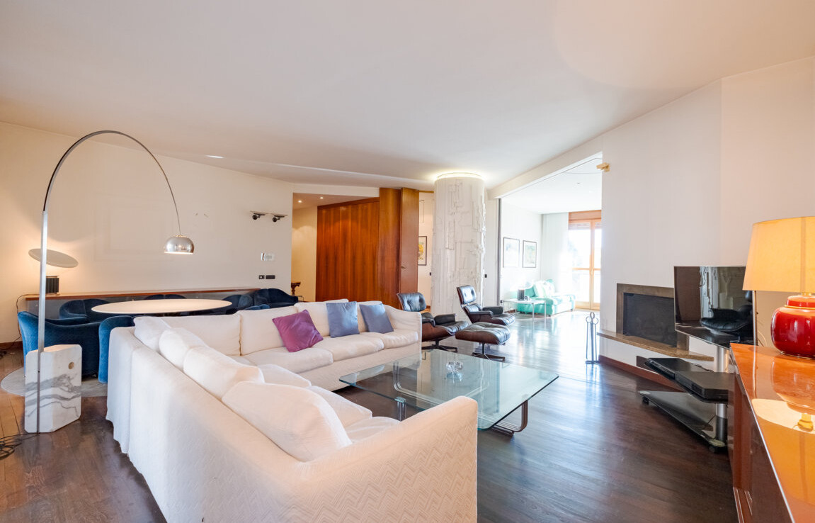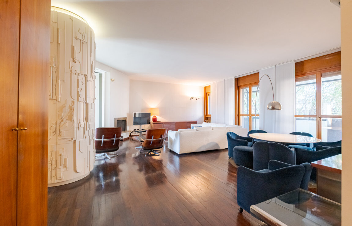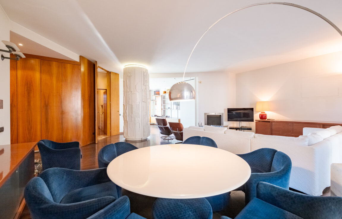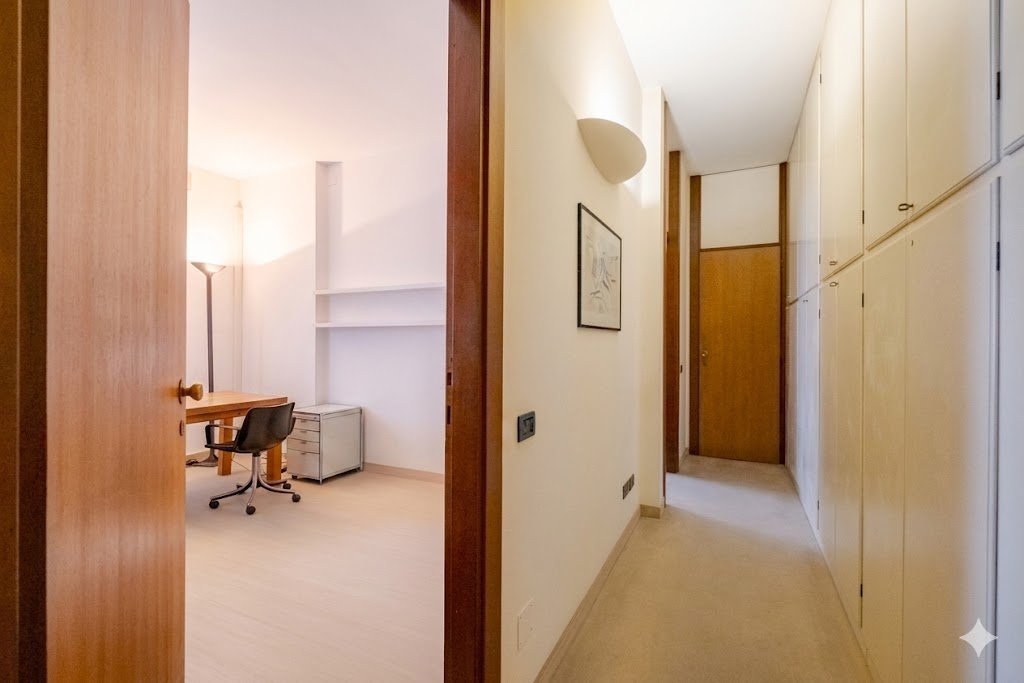 L’appartamento si distingue per una distribuzione degli ambienti magistrale, capace di separare con eleganza la vita di rappresentanza dalla dimensione privata.