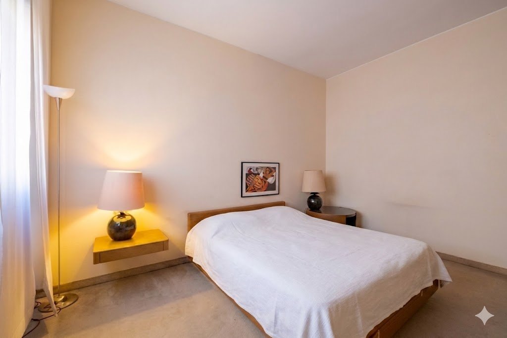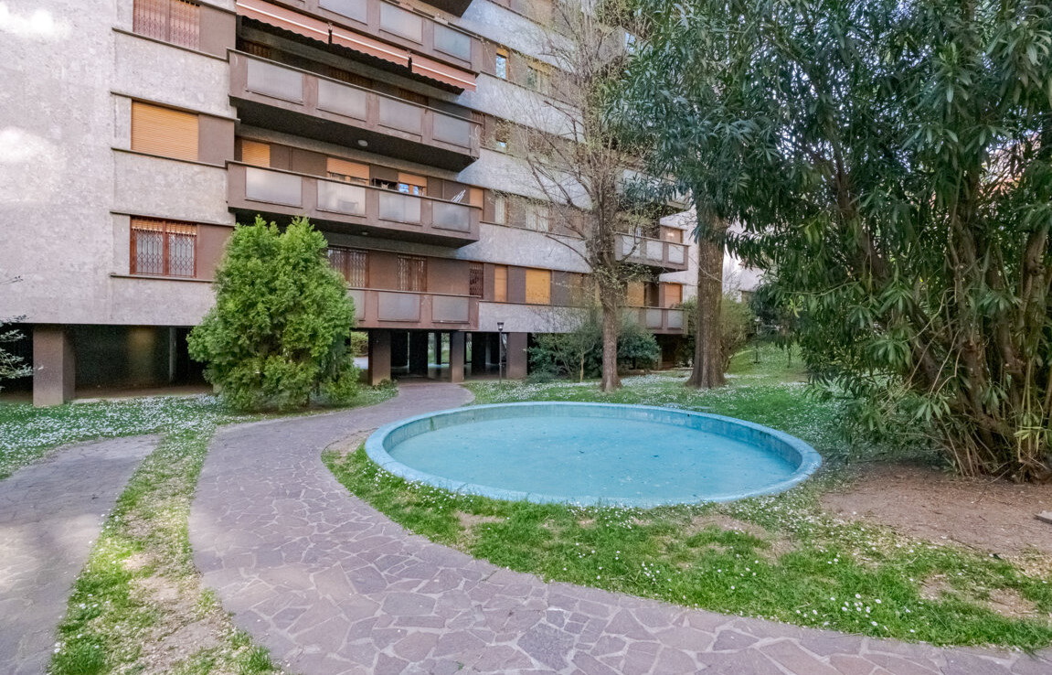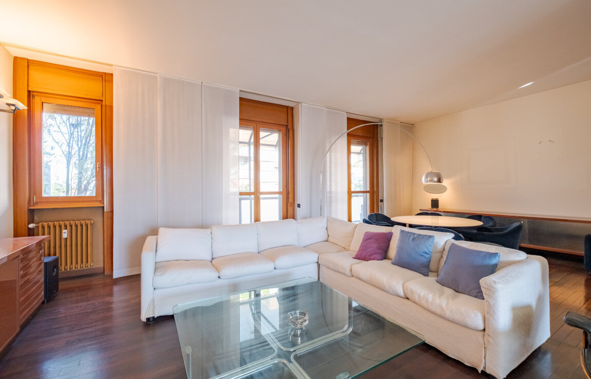 Posta ad un piano alto di un elegante edificio degli anni ’70, la residenza gode di una doppia esposizione che regala una luce naturale zenitale e una vista privilegiata sul giardino condominiale.