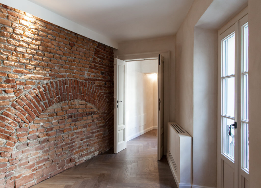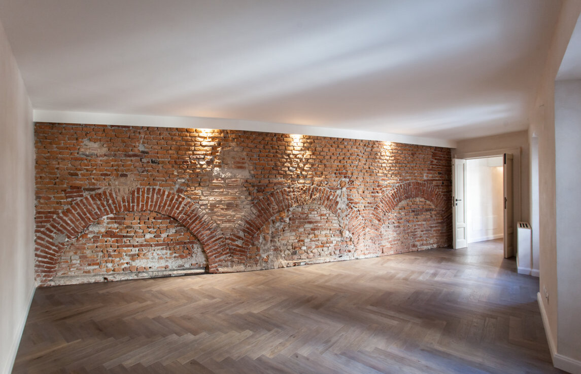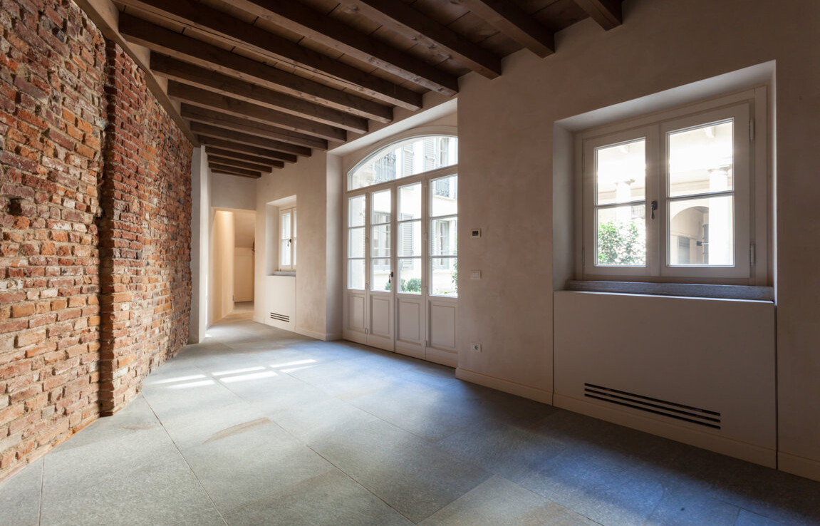 La residenza, caratterizzata da un’atmosfera silenziosa e riservata, si sviluppa su due livelli con affaccio privilegiato sulla splendida corte interna monumentale.