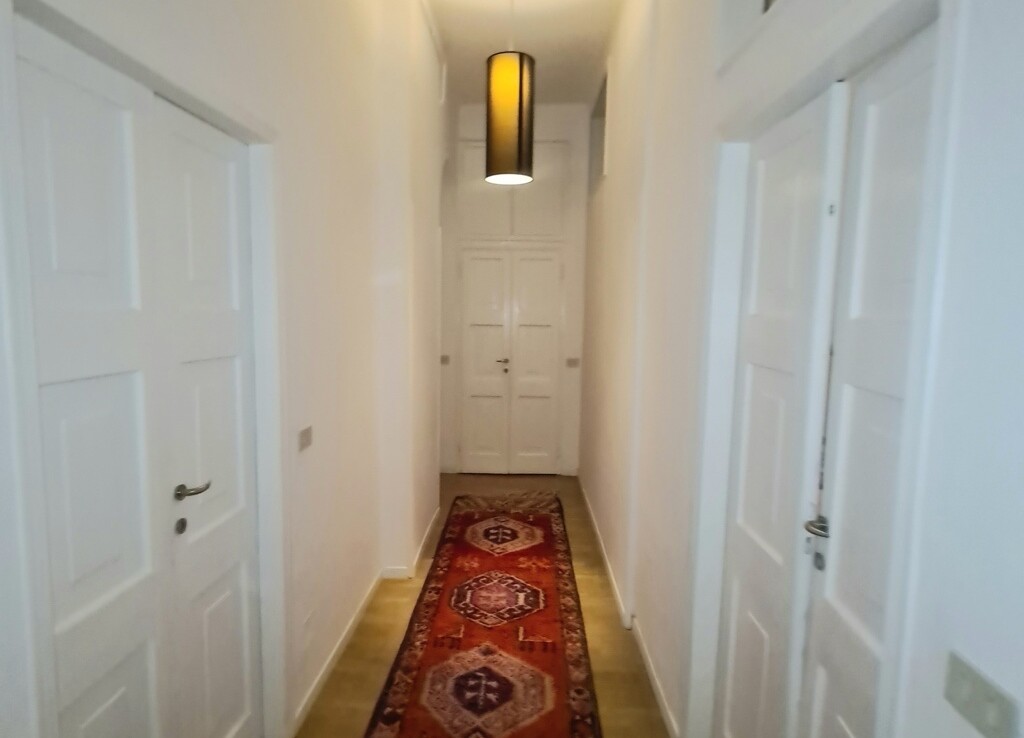 L’appartamento è molto luminoso, con doppia esposizione e numerosi punti luce; dispone di un doppio ingresso, soggiorno triplo, sala da pranzo, quattro camere da letto, tripli servizi e un bagno di cortesia.