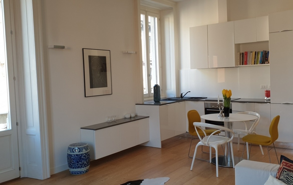 Elegante zona residenziale vicino a Corso Magenta, in prestigioso palazzo d’epoca che ha conservato intatte le finiture di pregio delle parti comuni, appartamento finemente arredato di mq 70, composto da: ingresso, ampio soggiorno con cucina a vista, camera e bagno. Esposizione esterna. La soluzione è completata da un accurato servizio di portineria.