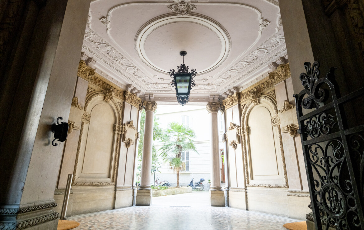 Nelle immediate vicinanze dell’Arena Civica e della ricercata Via Solferino, in prestigioso palazzo d’epoca dell’800 con servizio di portierato intera giornata, raffinata residenza di charme di mq 227 con giardino privato di 70 mq.