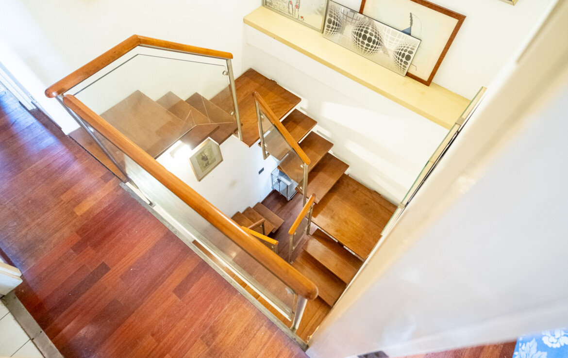 La residenza con doppia esposizione si sviluppa su due piani collegati da una scala interna.
